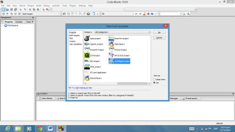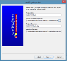 - Abrir Code::Blocks y crear un proyecto nuevo, seleccionar wxWidgets Project