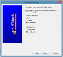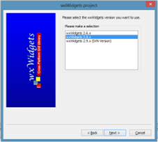- La primera ventana es de introducción y dar next. Seleccionar la versión de wxwidgets instalada, en este caso será la versión 2.8.x